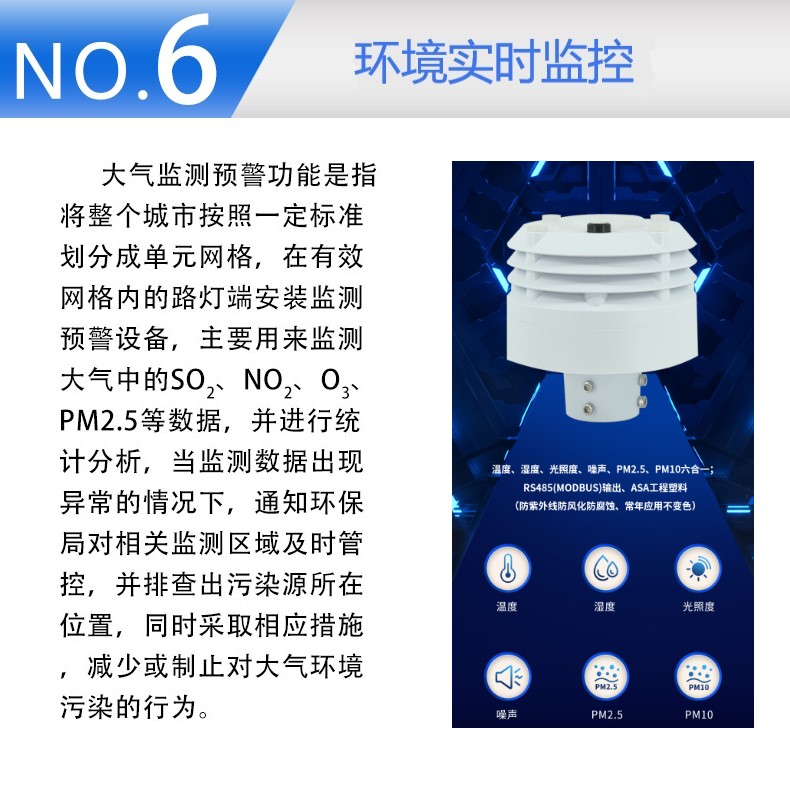 智慧路灯是依托智慧灯杆和LED路灯,集成WIFI基站、摄像头、红外线传感器、雷达、电子显示屏、充电桩、环境监测传感器等,变成一个信息载体,实现数据监控、环保监测、车辆监控、安防监控、